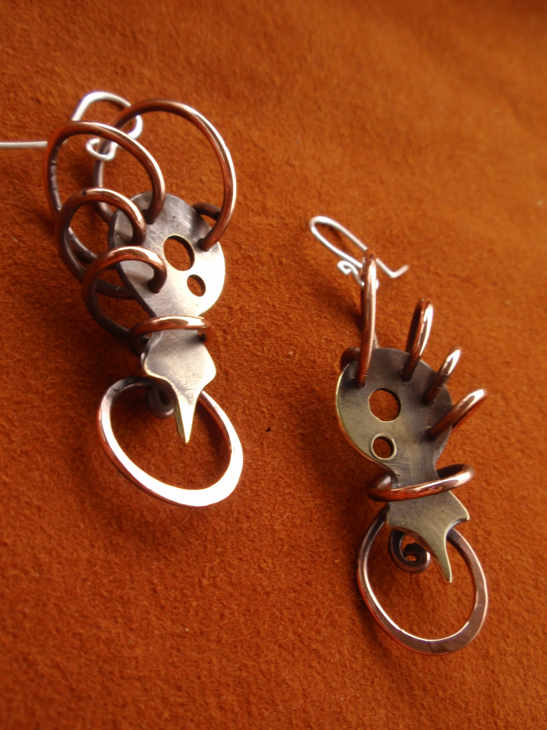 These are only a fraction of the wide variety of styles and design that have been made by Michele Judge over the course of many years. Some of them experiments, some of them accidents, some of them thoroughly planned out, and some of them can never be made again due to either the laws of physics, or the availability of materials. Many of these are made with found objects from many different countries. However, if you can not live without one of these pairs of extraordinary works, simply contact the artist and she can possibly make something very similar for you (right click on the image- select "Copy"- compose an email to michelejudge@gmail.com- right click in the body of the email and select "paste"). Perhaps even with a personalized flare of your own!